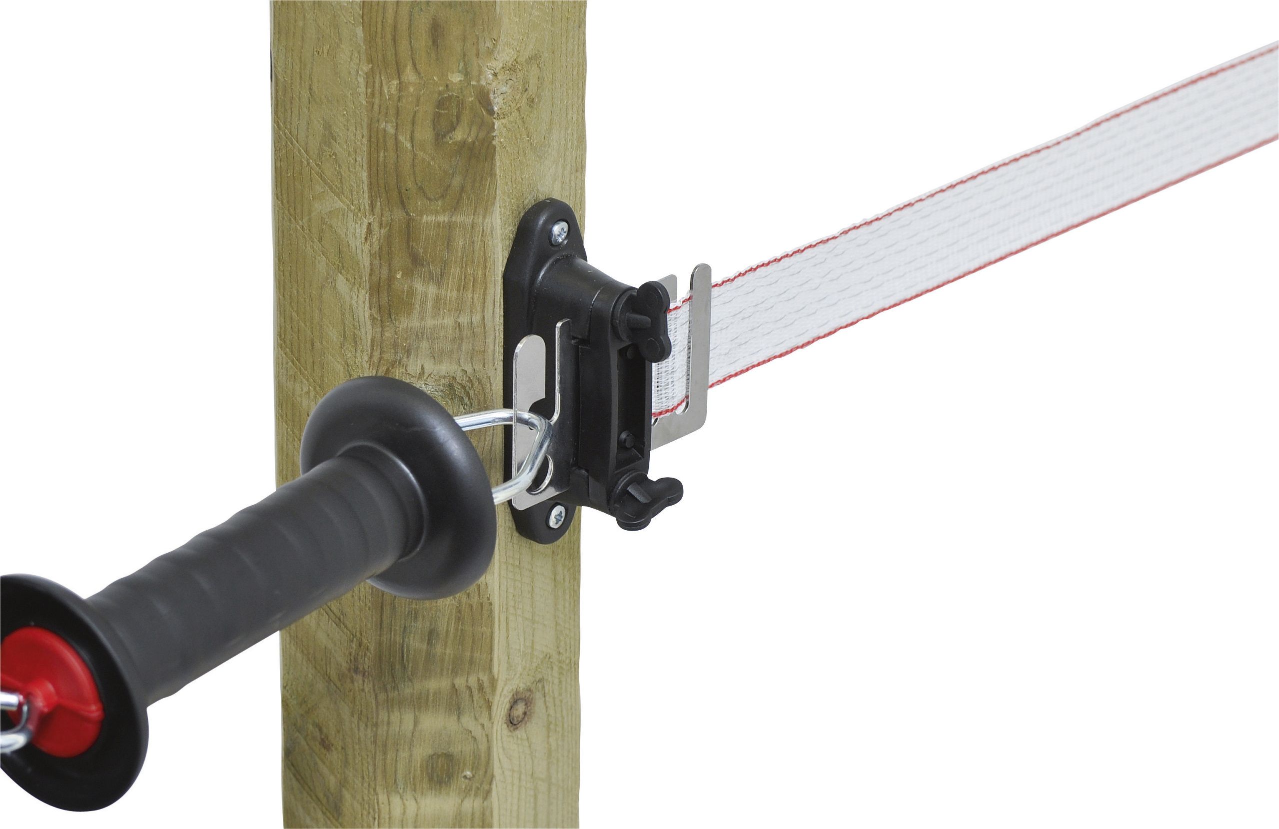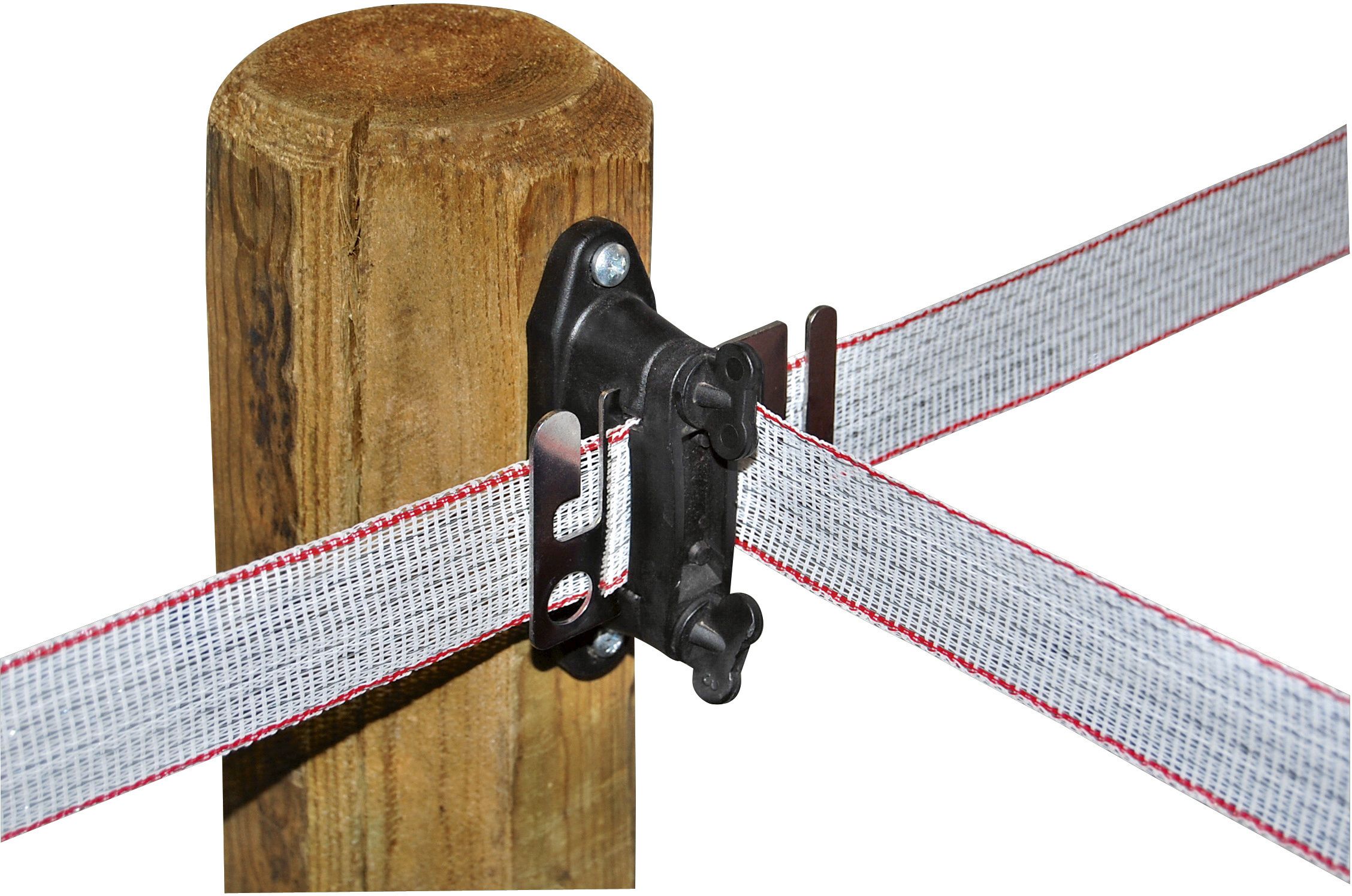 4 Isolatoren und 4 Anschlussplatten - robuster Bandisolator mit Anschlussplatine aus Edelstahl für Torgriffe und Anschluss an das Weidezaungerät