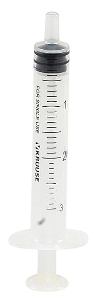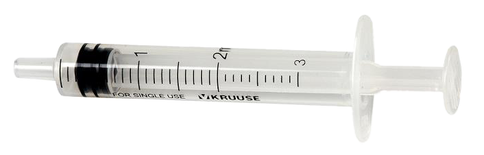 Hochwertige Einwegspritzen mit 3-Komponenten-System, Luer-Anschluss und gut lesbarer Skala. Jede Spritze ist einzeln steril in einer Papier-Kunststoff-Verpackung verpackt.
