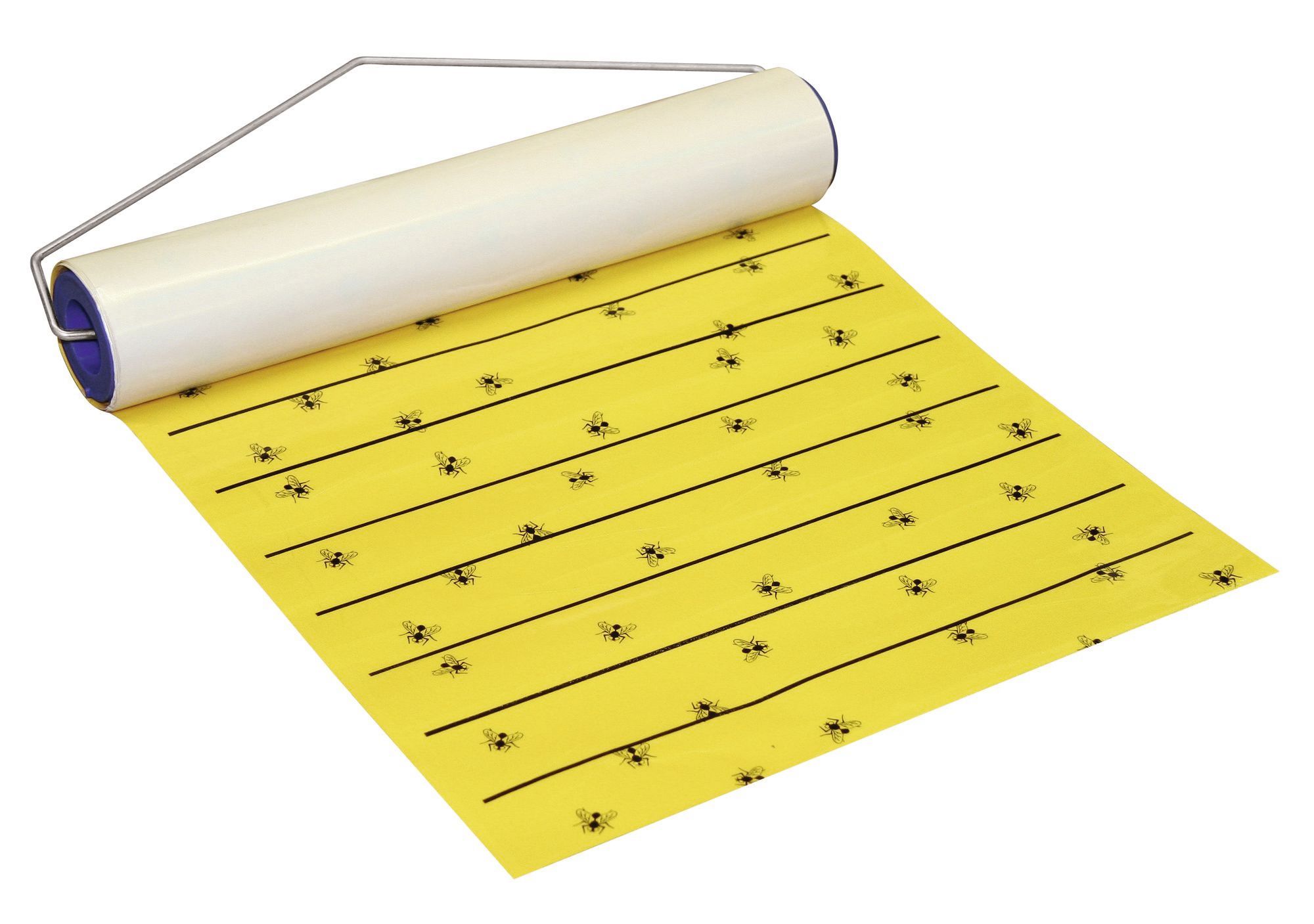 - Fliegen werden durch das Papier angezogen und bleiben auf der Falle kleben