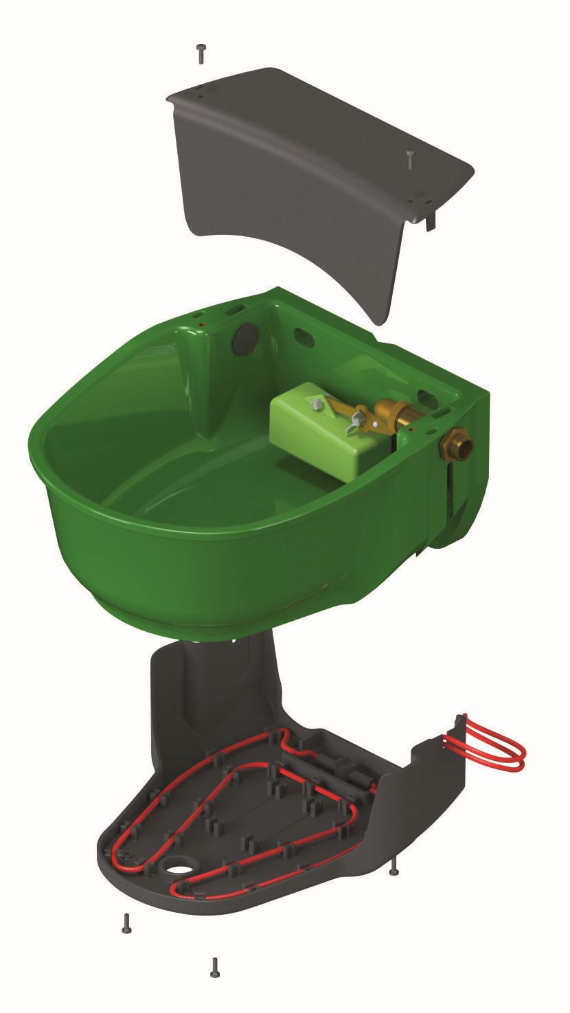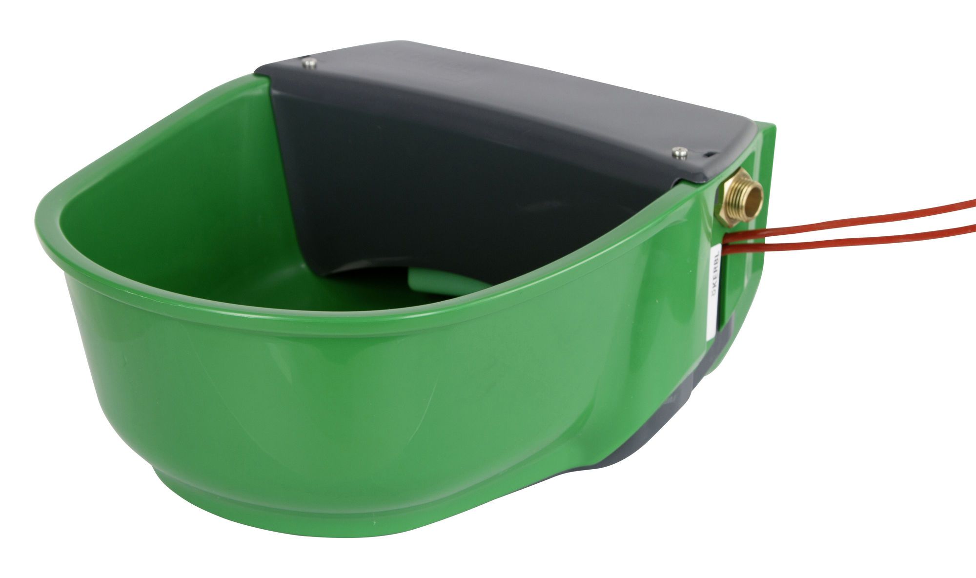 Heizbares Schwimmer-Tränkebecken SH30 aus robustem Kunststoff mit integriertem 31 W Heizkabel zur Beheizung von Becken und Ventil, ausgestattet mit Frostschutzthermostat (Einschalten ca. +5 °C, Ausschalten ca. +13 °C). Heizkabel leicht austauschbar, geeignet für Umlaufheizsysteme. Volumen 5 Liter, Wasserdurchfluss ca. 6,5 l/min bei 2-3 bar, Wasseranschluss 1/2" links oder rechts. Mit Ablaufstopfen und Ventilabdeckung mit Schnapphaken für schnellen Zugang, passend für Wand- und Rohrbefestigung. Gewicht 2,7 kg.