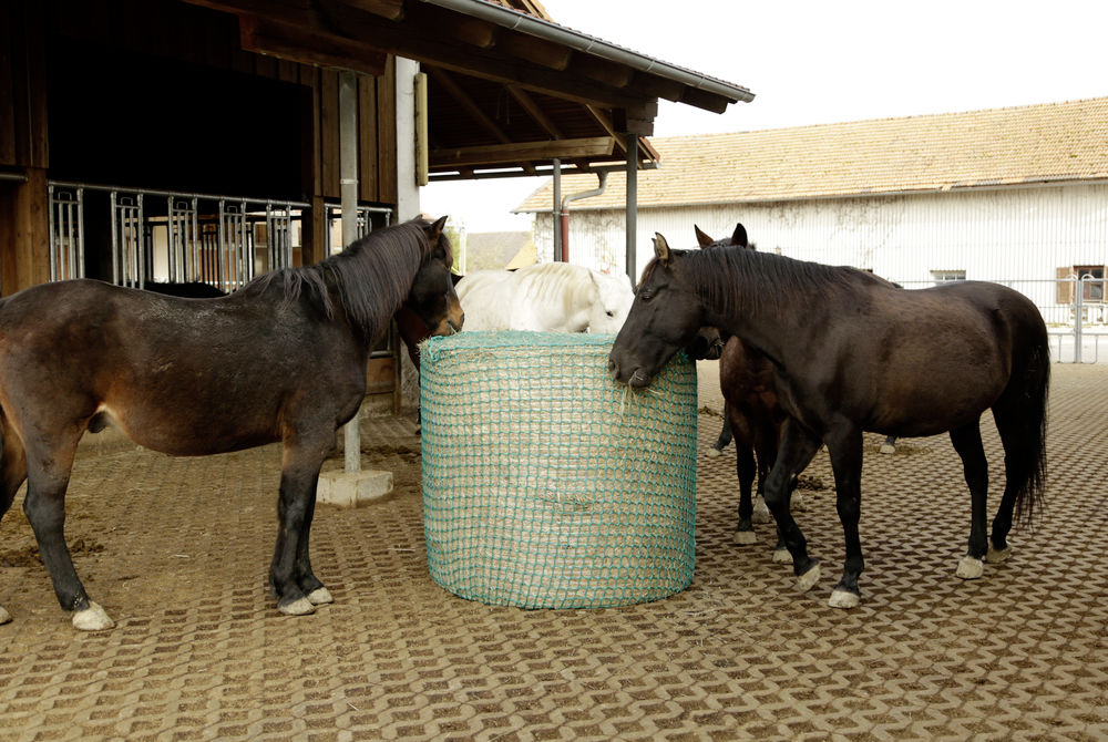 - Futternetz für Heu- und Siloballen für die futtersparende Versorgung von Pferden mit Rauhfutter