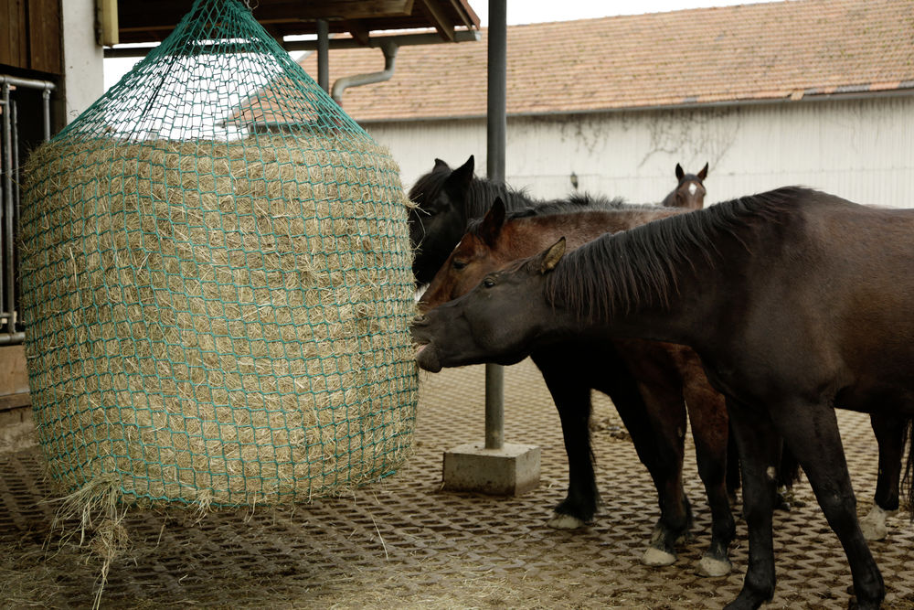 - Futternetz zum hängend Vorspannen für Heu- und Siloballen für die futtersparende Versorgung von Pferden mit Raufutter