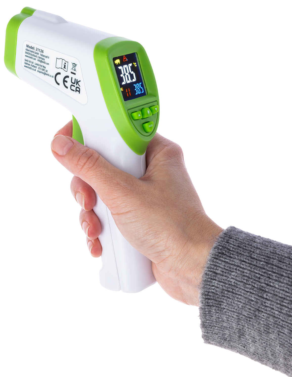 - das Kerbl Infrarot Thermometer ermöglicht kontaklose, schnelle Temperaturmessungen bei Menschen, Tieren und Objekten - ideal für Reihenmessungen geeignet