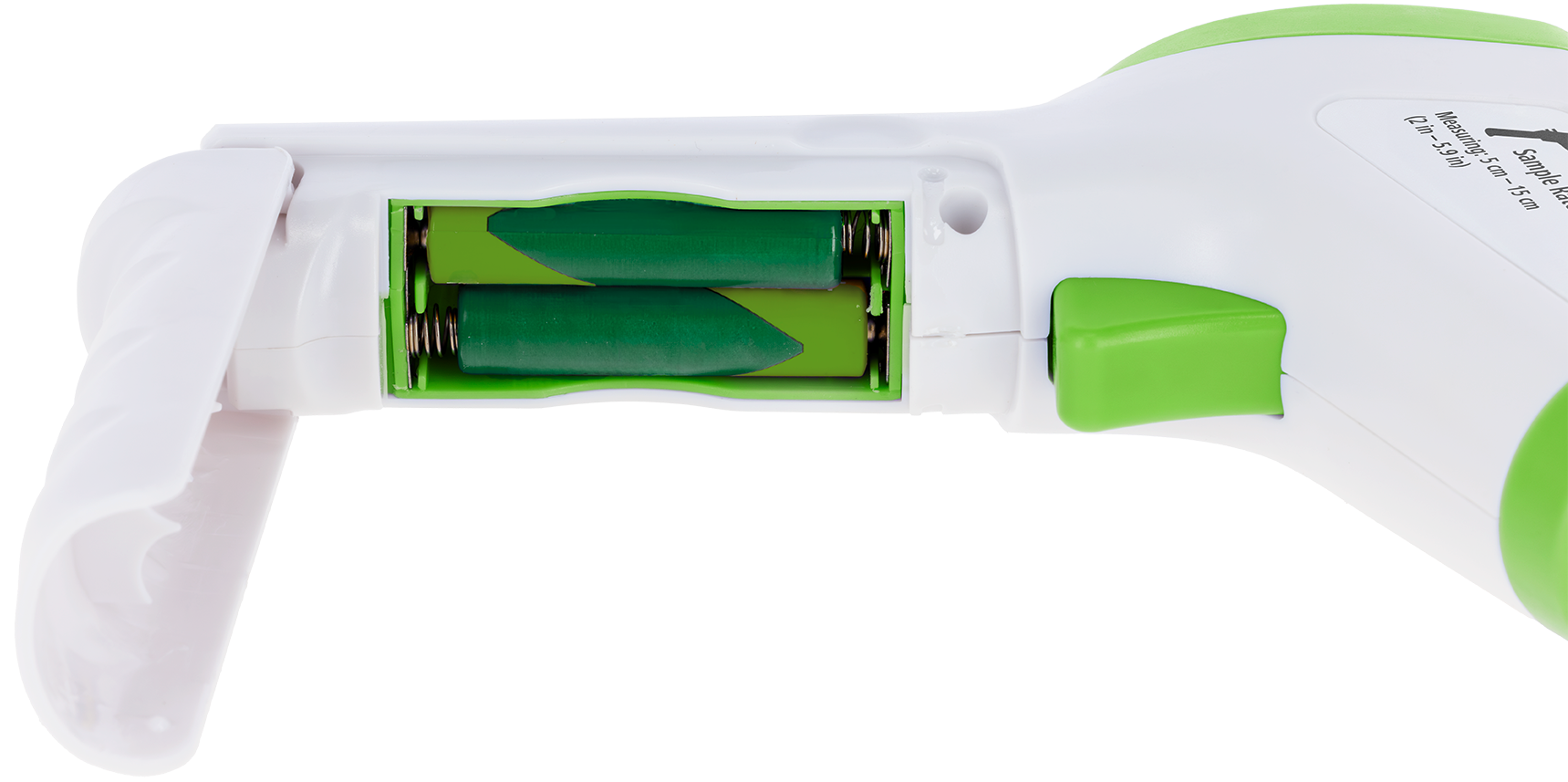 - richten Sie den Laser an eine möglichst unbehaarte Stelle im Anstand von 5-15 cm, drücken den Knopf, und lesen Sie den Wert am Display anschließend ab