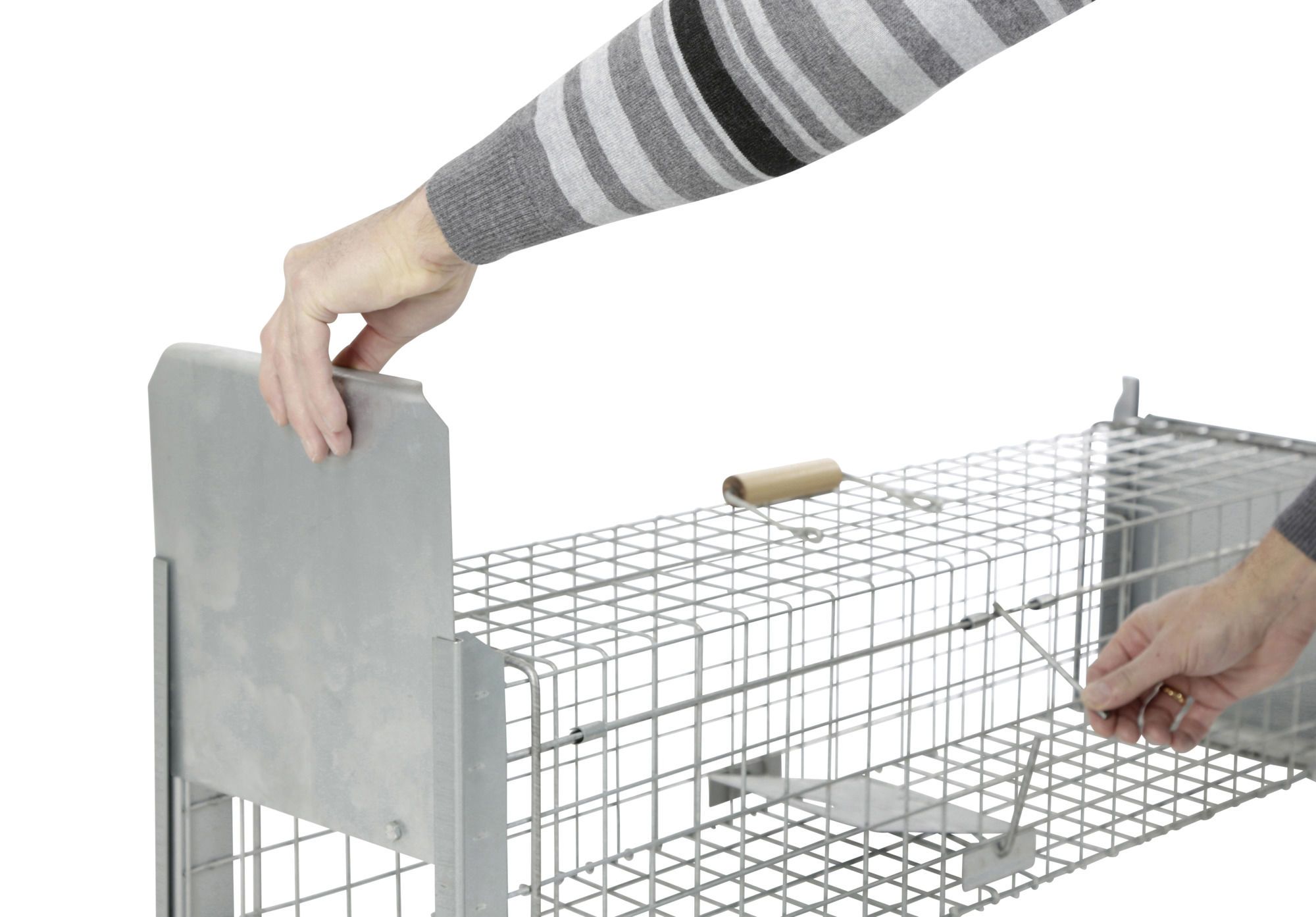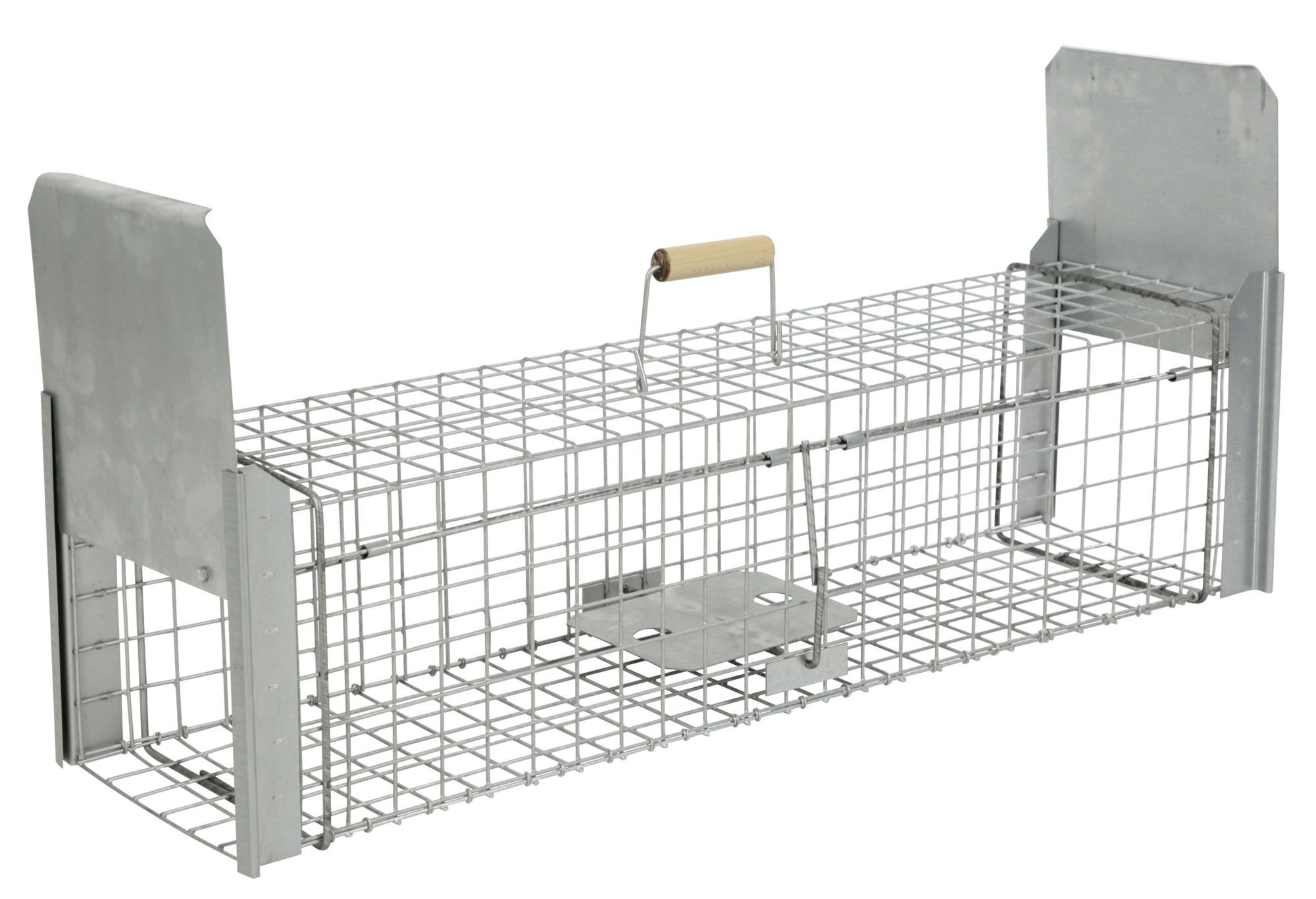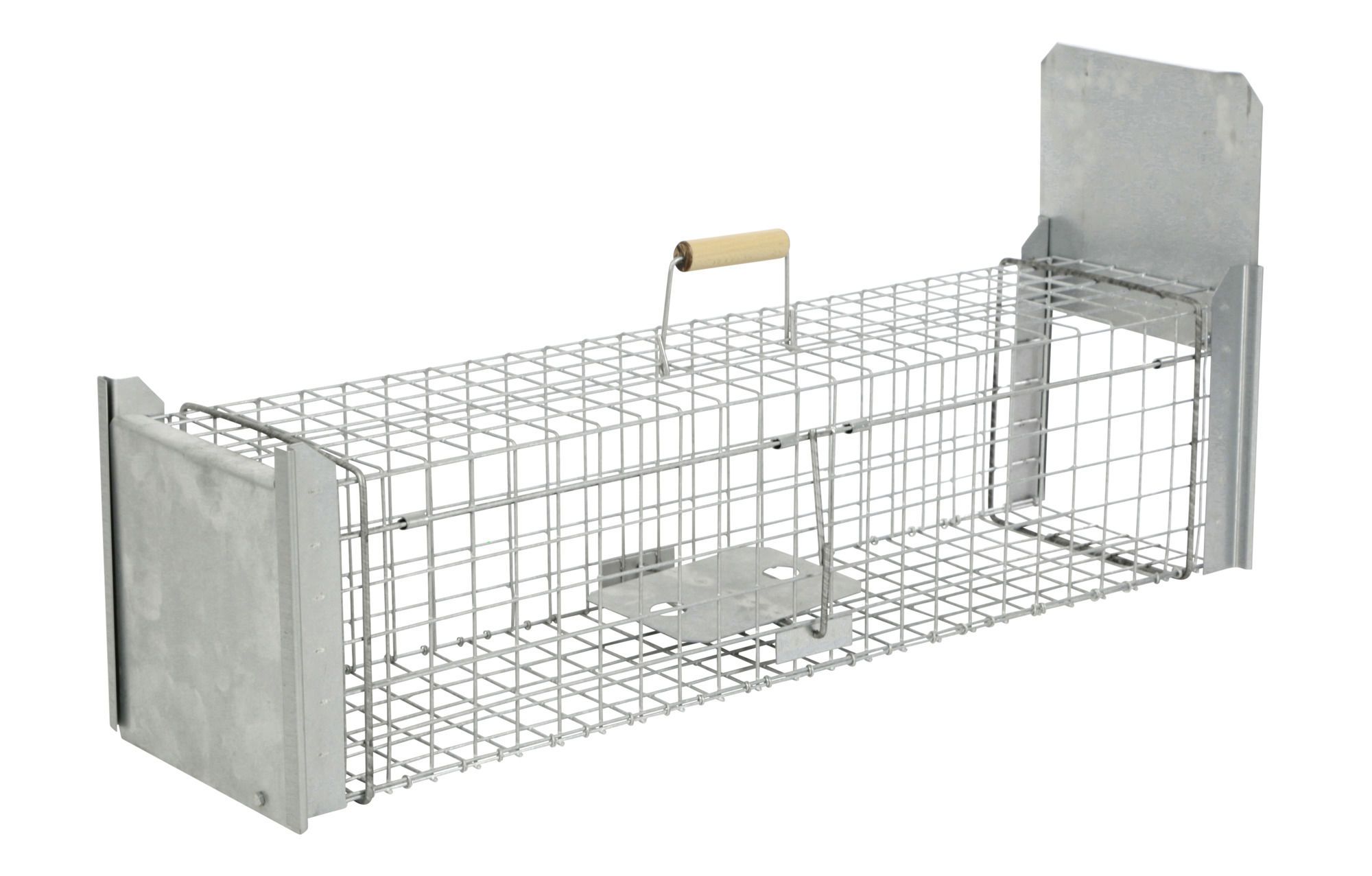 Die Kastenfalle Alive Predator misst 105 x 26 x 26 cm und eignet sich zum sicheren und tierschonenden Fangen von Katzen, Mardern, Kaninchen und anderen Tieren. Sie verfügt über eine zweiseitige, schnell schließende und ausbruchssichere Fall- beziehungsweise Schapptür mit verstärktem Rahmen. Das stabile Metallgeflecht aus feuerverzinktem 3,3 mm starkem Draht bietet direkten Einblick, ohne Mensch oder Tier zu gefährden. Ein Holzhandgriff ermöglicht den sicheren Transport der Falle. Das praktische Zubehör wie Metallzange, Eierhalter und Fleischspieß erleichtert das Präparieren und Befestigen des Köders. Die Falle ist extrem stabil, langlebig, vormontiert und sofort einsatzbereit.