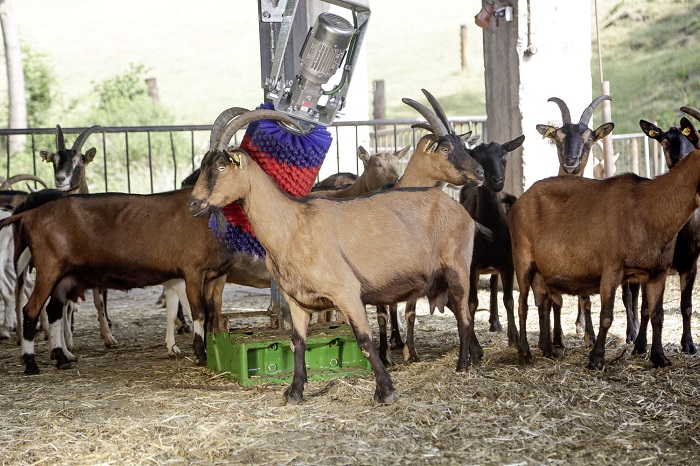- Die Kratzbürste ist für Kälber ab 3 Monaten und ausgewachsene Ziegen geeignet. Für max. 40 Kälber bzw. max. 60 Ziegen ist eine Bürste konzipiert.