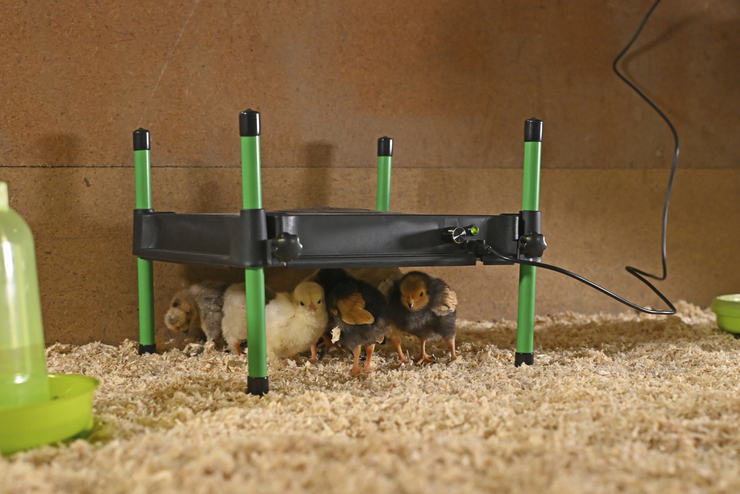 - Küken haben nach dem Schlüpfen einen hohen Wärmebedarf und wärmen sich unter dem Federkleid der Mutterhenne. Die Wärme staut sich unter den Federn an und die Küken genießen die wohlige Temperatur. Nach diesem Vorbild funktioniert auch die Wärmeplatte CosyHeat. Die Küken schlüpfen unter die Platte und ruhen in der kuschligen Wärme darunter. Sie können sich direkt an der Platte anschmiegen. Zudem strahlt die Platte die Wärme nach unten ab und ein Wärmepolster staut sich an. Mithilfe eines Drehreglers an der Platte kann die Temperatur einfach und stufenlos an das Wärmebedürfnis der Küken angepasst werden. Ein integriertes Thermostat sorgt für eine konstante Temperatur unter der Platte. Es heizt bis zum Erreichen der benötigten Temperatur und hält diese aufrecht. Da die Wärmeplatte nicht dauerhaft heizt, ist sie energiesparender als herkömmliche Wärmestrahler. Mit den höhenverstellbaren Standbeinen lässt sich der Wärmeplatte einfach an die Größe der Küken anpassen.