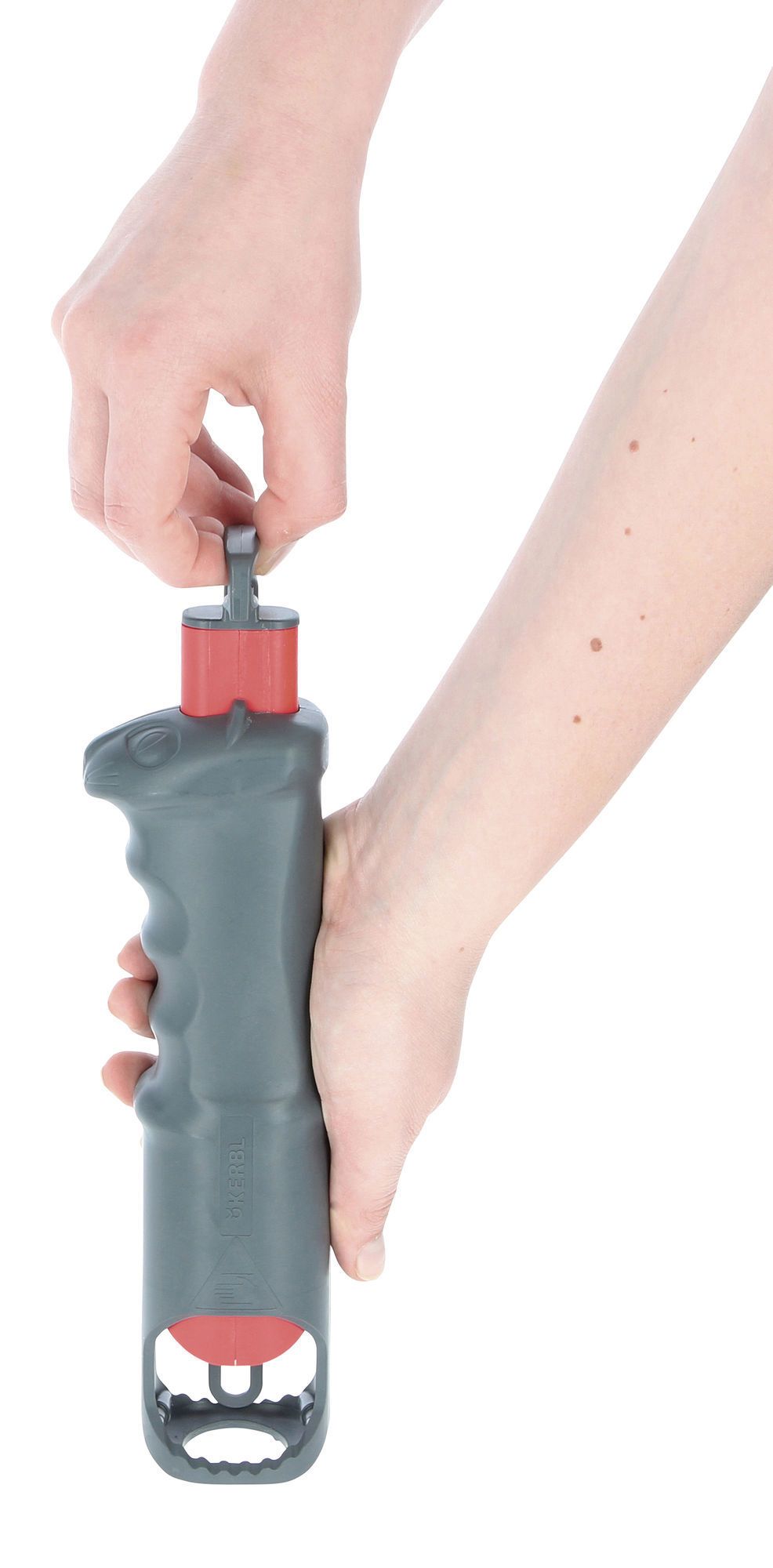 - Zum Vorspannen zieht man den roten Hals der Falle heraus - solange dieser sichtbar ist, hat die Falle noch nicht ausgelöst! Die Falle hat zugeschnappt, wenn nur mehr der Katzenkopf ohne roten Hals sichtbar ist.