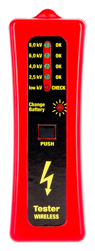 - zeigt die Spannung durch vier leuchtstarke grüne Dioden in vier Stufen an: 2500 - 8000 Volt