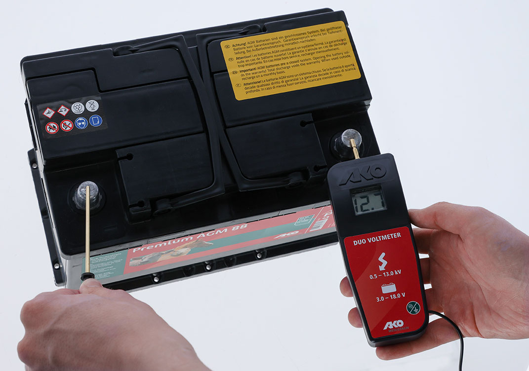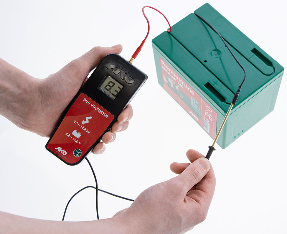 - digitaler AKO "All-in-One" DUO-Voltmeter prüft die Spannung von Weidezaungeräten, Elektrozäunen und 9 Volt Batterien bzw. 12 Volt Akkus
