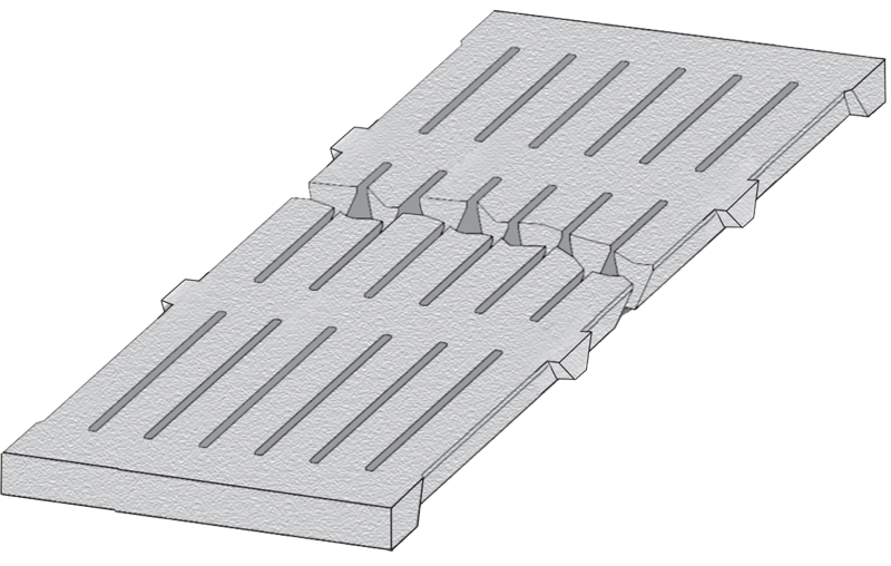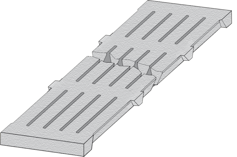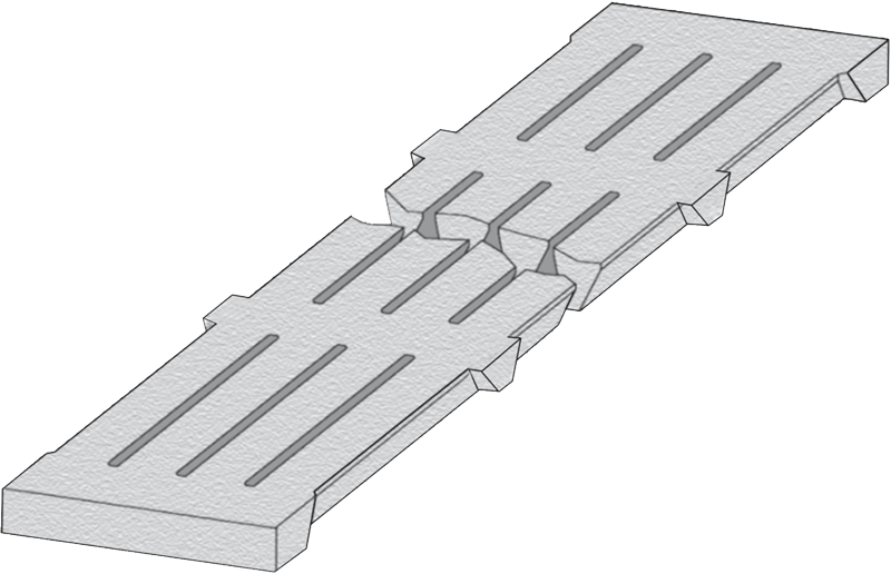 Der Aufzuchtspaltenboden ist besonders den Bedürfnissen der Ferkel angepasst. Die ideale Spaltenanordnung und die vorteilhafte Auftrittsfläche sorgen für den perfekten Ferkelrost. Die Kotabrisskante und die niedrige Höhe von 5/6/7 cm in der Mitte des Flächenelementes gewährleisten ein optimales Durchtreten des Kotes durch den Spalt.