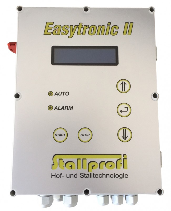 Die Easytronic II verfügt über eine LED Betriebsanzeige, Laufzeitüberwachung, sowie einer Start- und Stop-Taste mit integrierter Zeitschaltuhr. Die Bedienung ist einfach. Weiters ist eine Motorschutzüberwachung und eine Abschaltung der Anlage über Sensoren integriert. Zusätzlich kann Easytronic II die Dosierer automatisch auslösen. Die Beschickung der Kettenanlage kann über eine Spirale oder über eine motorgesteuerte Aufnahme erfolgen. Vorteil ist, das die Kettenanlagenie überfüllt werden kann.